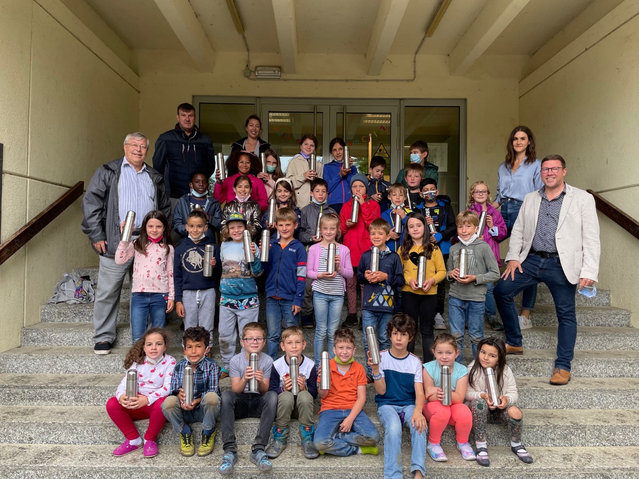 14.07.2021D'Gemeng huet fir all Kand, fir d'Cycle 2 bis 4, e flotte Bidon mache gelooss. Hei gesait een 2 Klassen wou si hier Bidon vun der Gemeng iwwerreecht kritt hunn. Mir soen der Gemeng e grousse Merci.